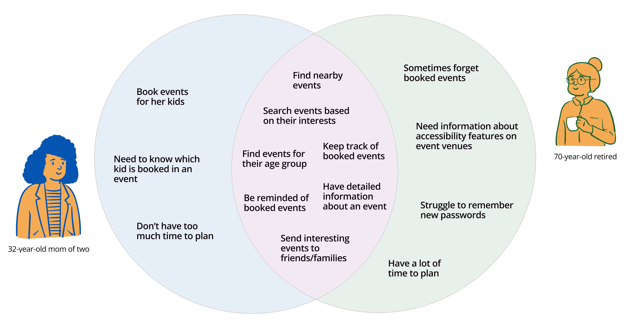 To better understand the struggles users faced and what was important when deciding which event to attend, I conducted interviews with community residents. With the gathered data, I created personas and empathy maps. This way it was possible to identify many common needs, as well as some individual differences.