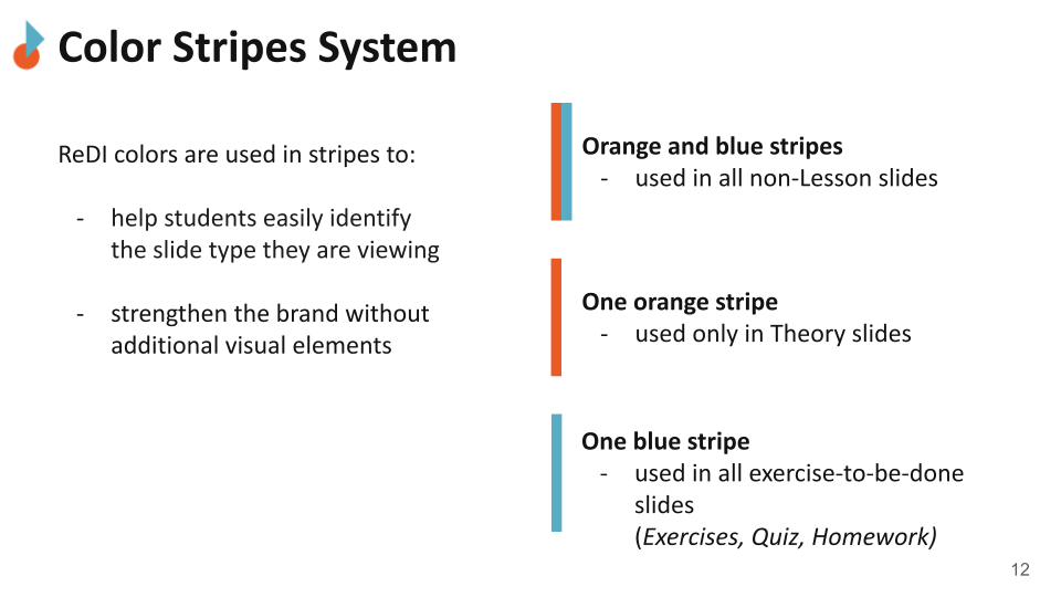 The color stripe system lets teachers and students instantly identify the slide type they are looking at — without reading a single word.