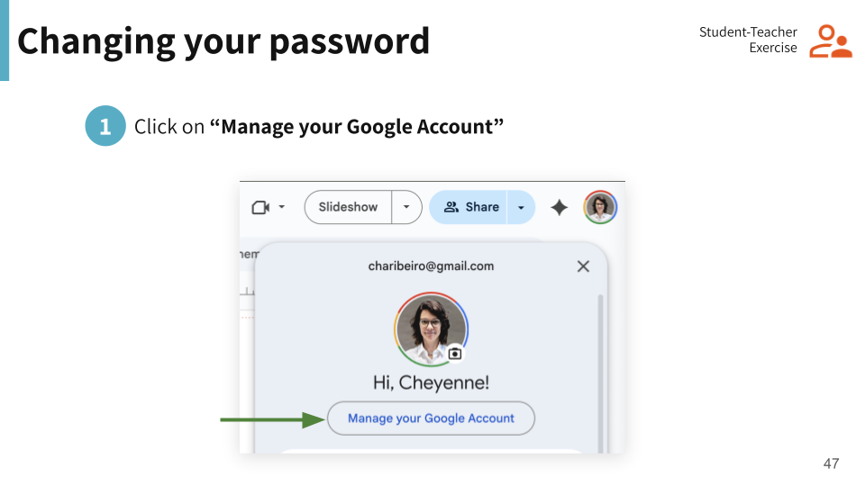 Three practical walkthroughs guide teachers through the most common scenarios: using the guide itself, applying the new theme to existing slides, and helping a colleague teach a lesson they created.